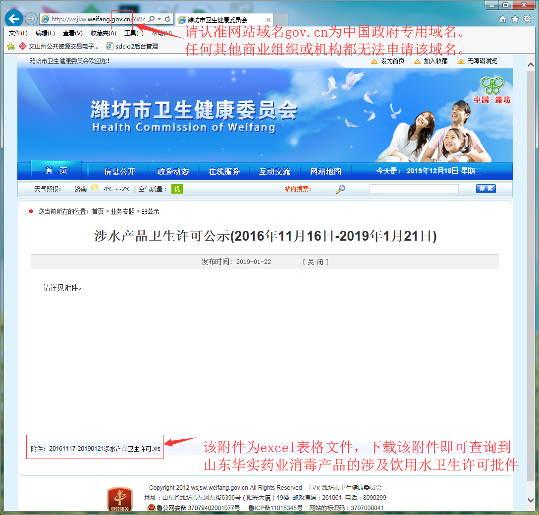 秀霸二氧化氯消毒劑及二氧化氯發(fā)生器系列產(chǎn)品《消毒產(chǎn)品涉及飲用水衛(wèi)生許可批件》可在政府部門網(wǎng)站:濰坊市衛(wèi)生健康委員會查詢,查詢鏈接請點擊下方鏈接即可。