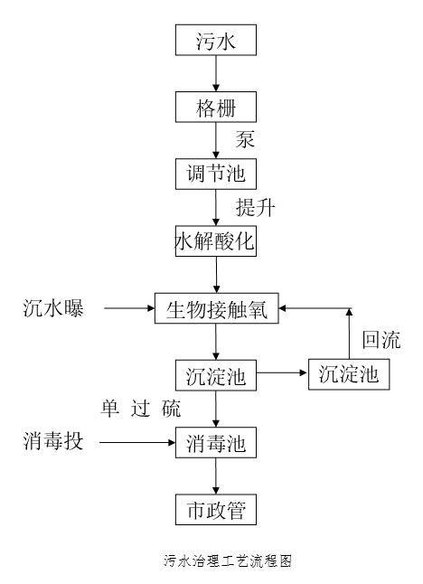 濟南市歷下區人民醫院院部污水治理工藝流程圖如下: