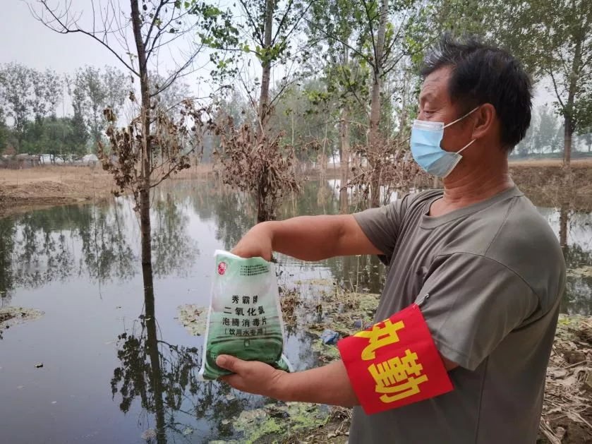 8月13日,3000袋二氧化氯消毒片按需分配到30個村子,村民們很快將消毒片撒在村子池塘、湖泊、內(nèi)積水處、家中水井、室內(nèi)外等地進(jìn)行消殺,以解燃眉之急。