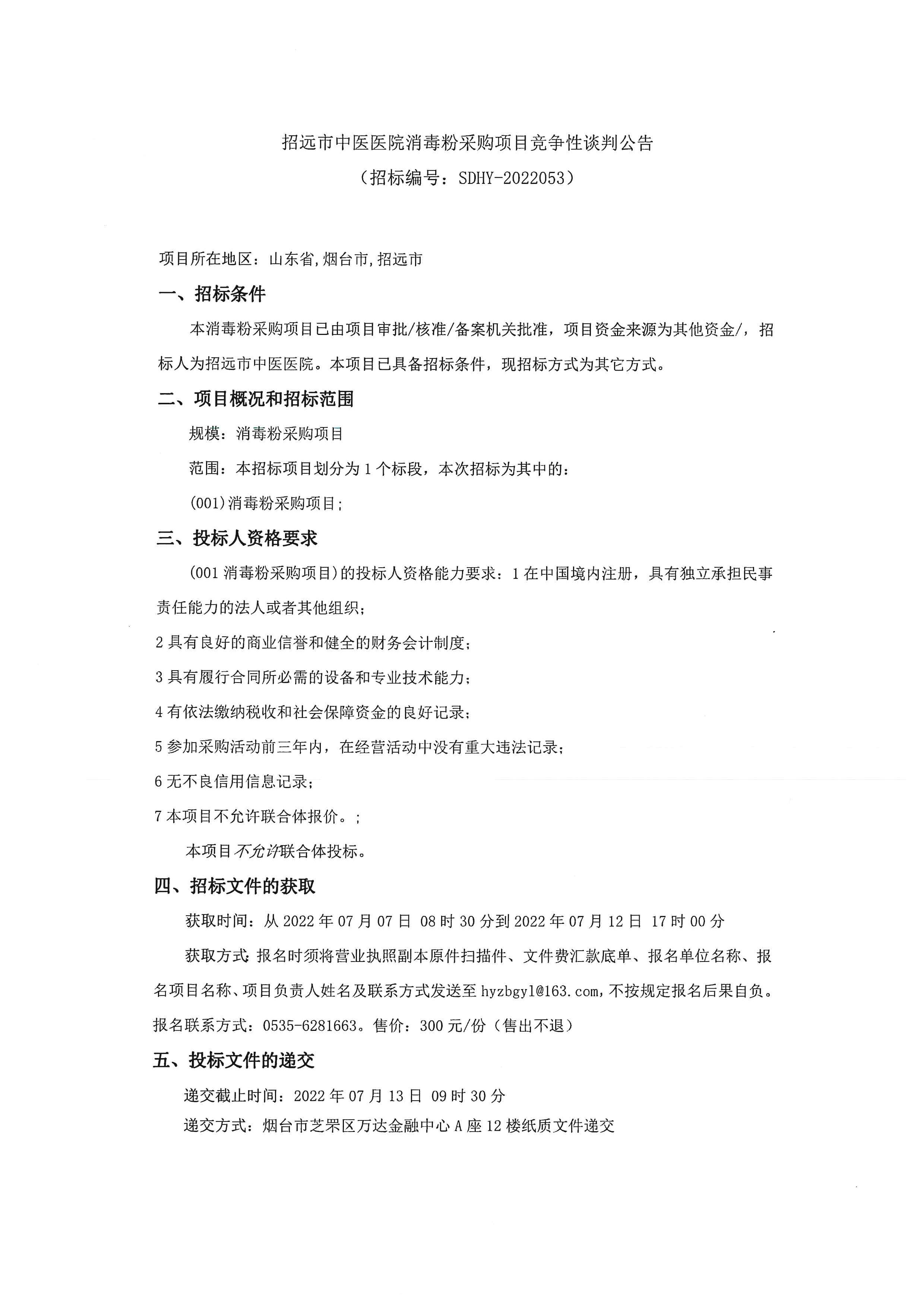 山東招遠(yuǎn)市中醫(yī)醫(yī)院消毒粉采購(gòu)項(xiàng)目競(jìng)爭(zhēng)性談判公告