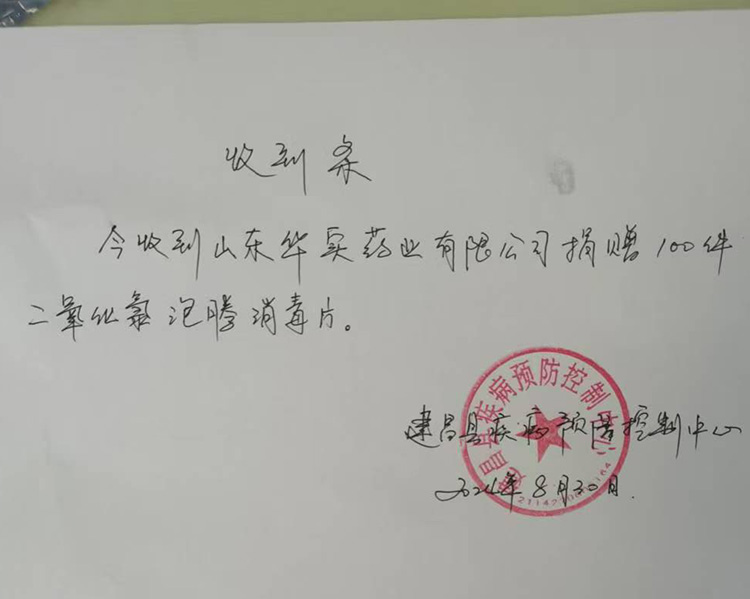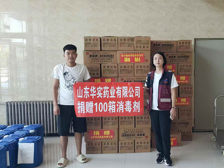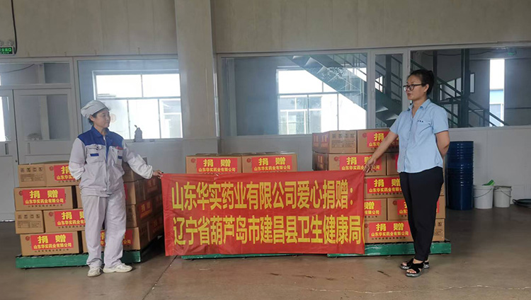 洪水無情,人間有愛 —— 山東華實(shí)藥業(yè)公司捐贈百箱消毒劑支援建昌縣災(zāi)后防疫